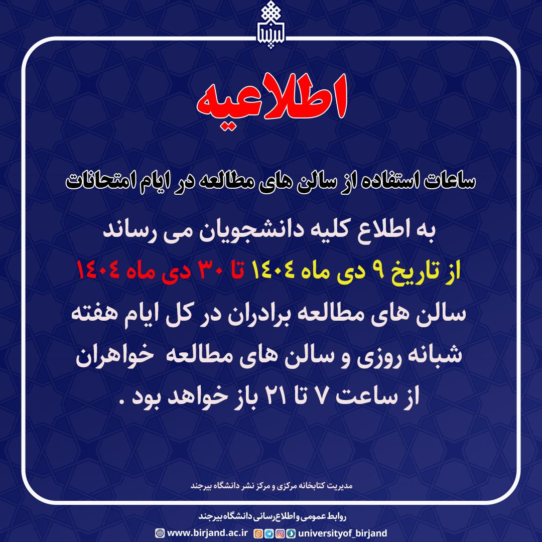 به اطلاع کلیه دانشجویان محترم دانشگاه بیرجند می‌رساند؛